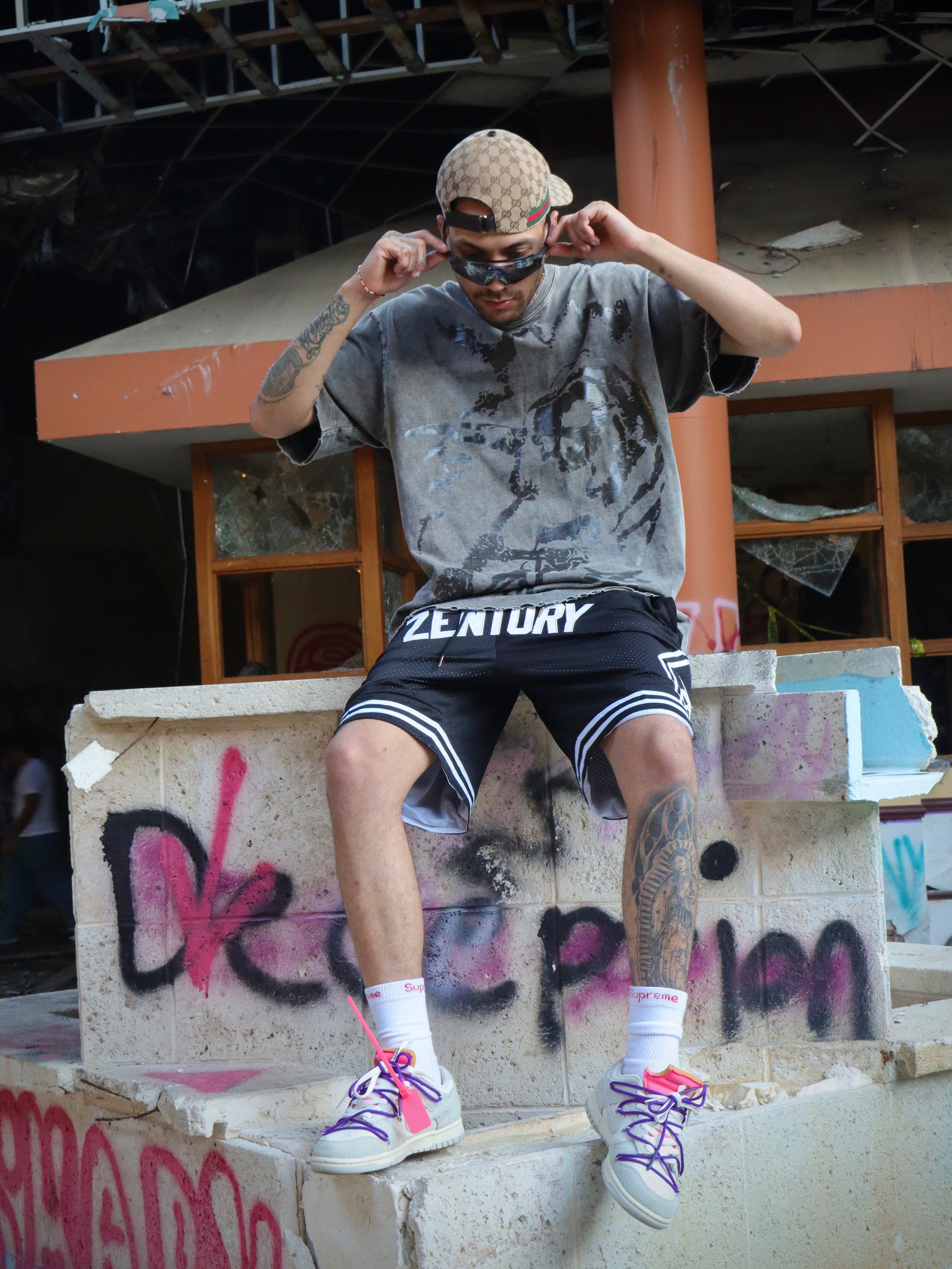 The Acid-Washed Greenish-Gray Distressed Skull Tee is crafted from 100% Peruvian cotton, offering a substantial 280GSM weight for durability. Its unique acid-washed finish and distressed details create a distinctive aesthetic. This oversized exclusive, with limited inventory, combines comfort with a bold design, suitable for various casual settings.