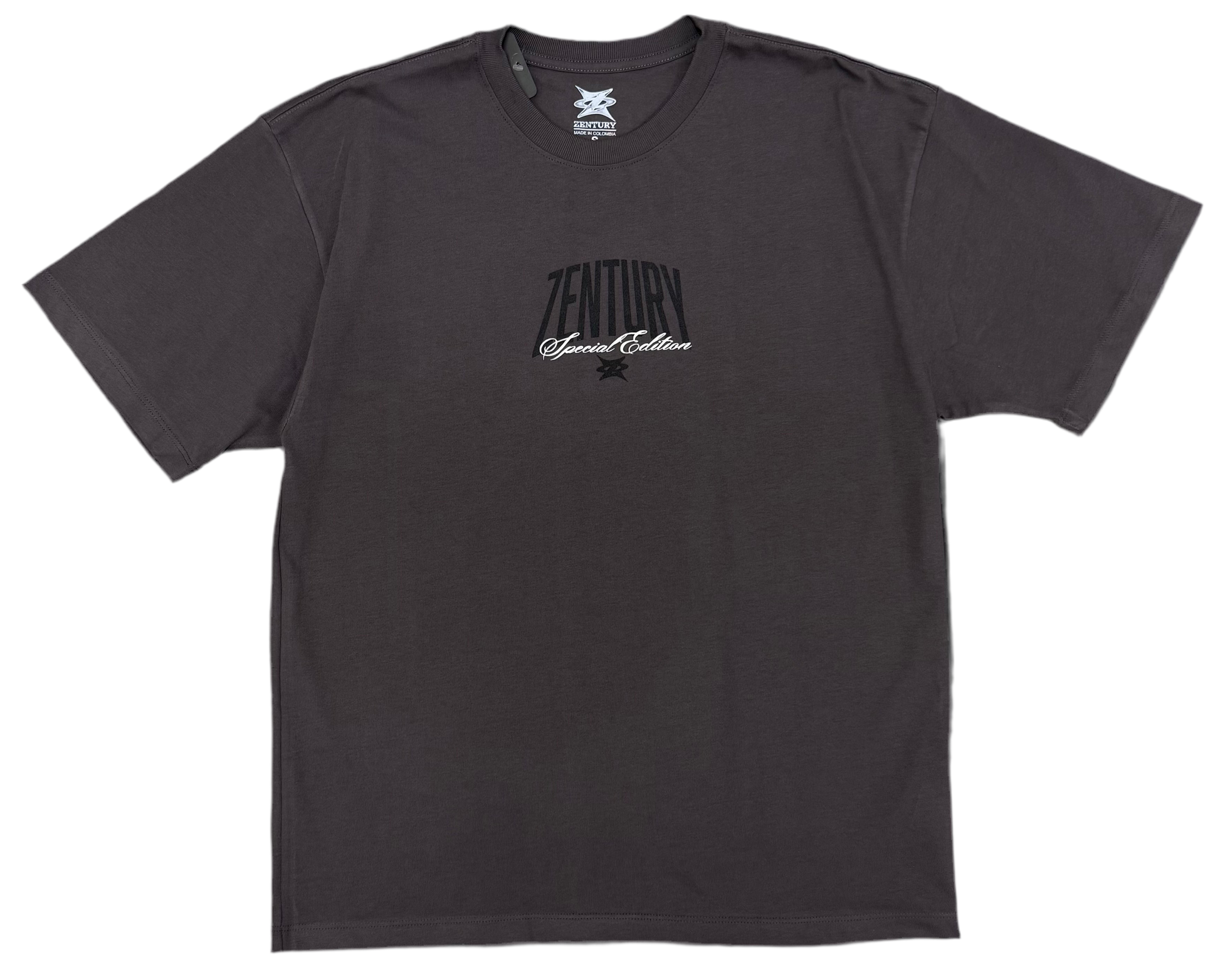 The ZENTURY Divine Energy T-shirt explores the balance between mysticism, faith, and power. On the front, the "ZENTURY Special Edition" logo in tall Gothic type centers the identity with understated strength. The back artwork reveals a haunting, sacred portrait — a veiled figure, serene yet intense, marked by stigmata and framed by divine hands raised in power and surrender.