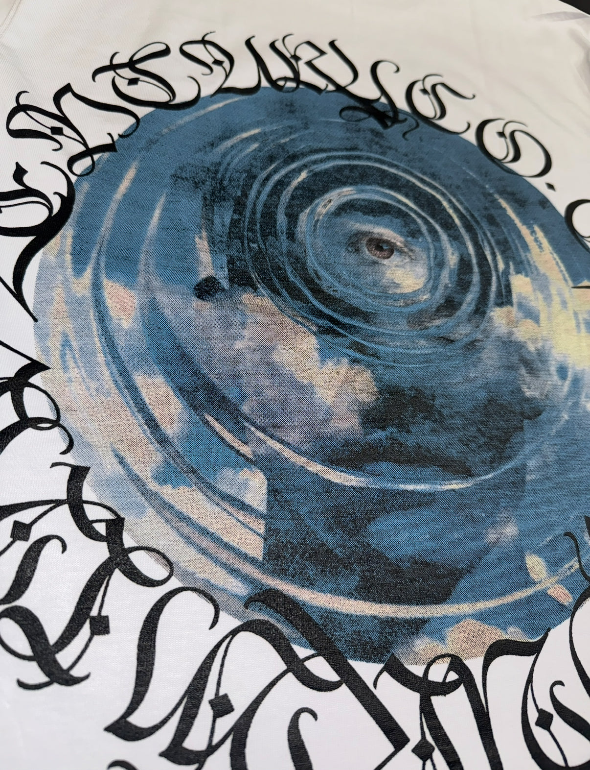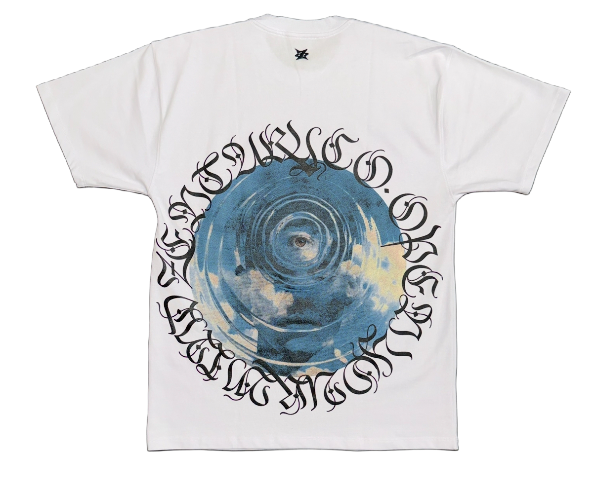 La camiseta Inner Vision de ZENTURY es una declaración visual de introspección y percepción. En el frente, el logo de la marca en un estilo gótico clásico marca identidad con fuerza. En la espalda, una poderosa composición muestra un rostro emergiendo desde un remolino acuático, con un solo ojo en el centro, representando la visión interior y la conciencia más allá de lo superficial.