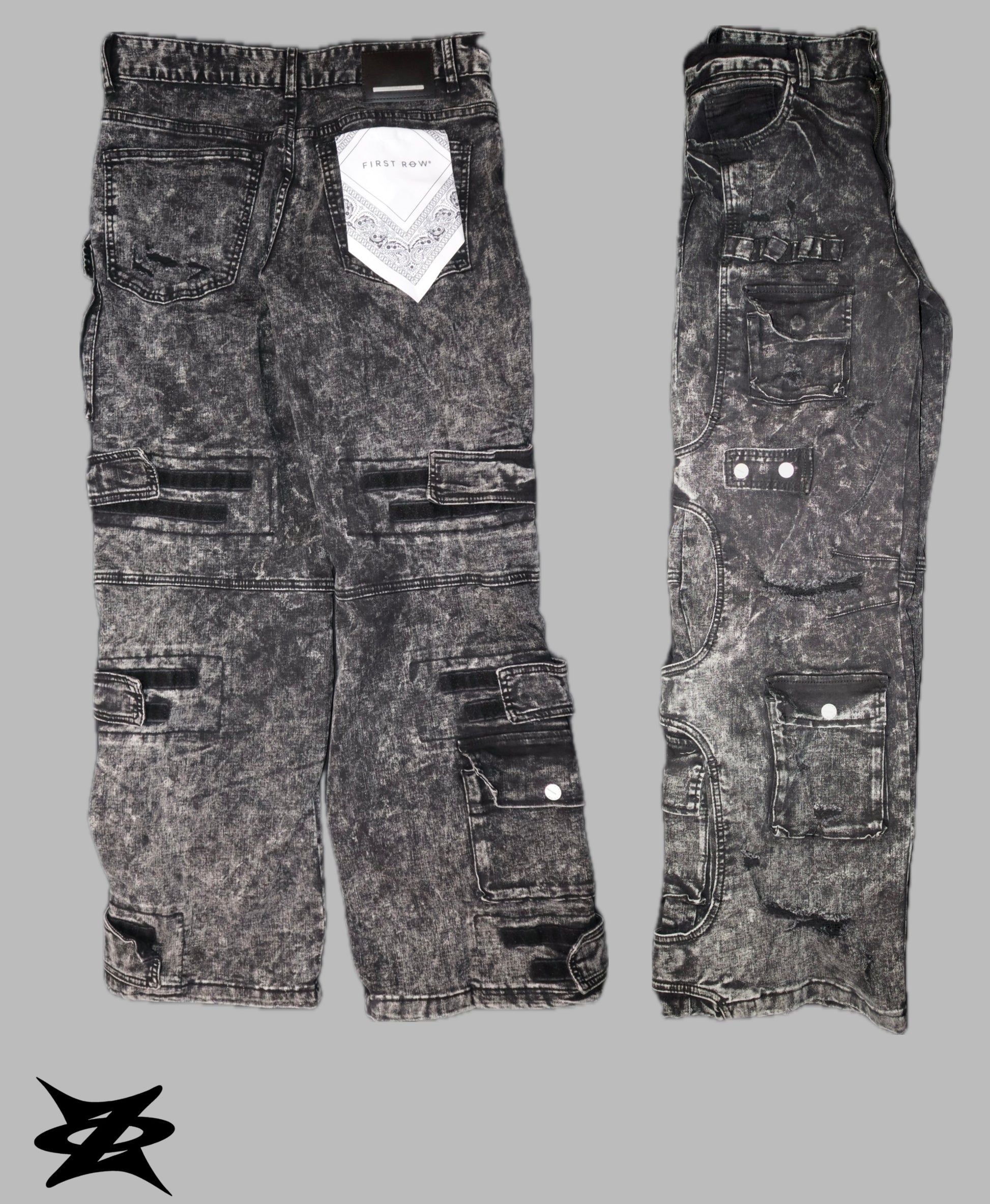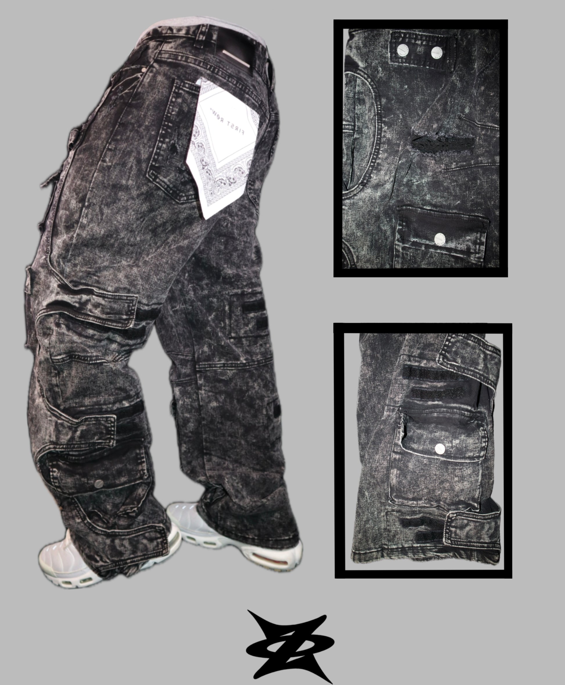 Lleva tu outfit al siguiente nivel con estos pantalones cargo relaxed fit en denim lavado ácido. Un diseño rudo y versátil con detalles desgastados y múltiples bolsillos funcionales para un estilo urbano sin esfuerzo.