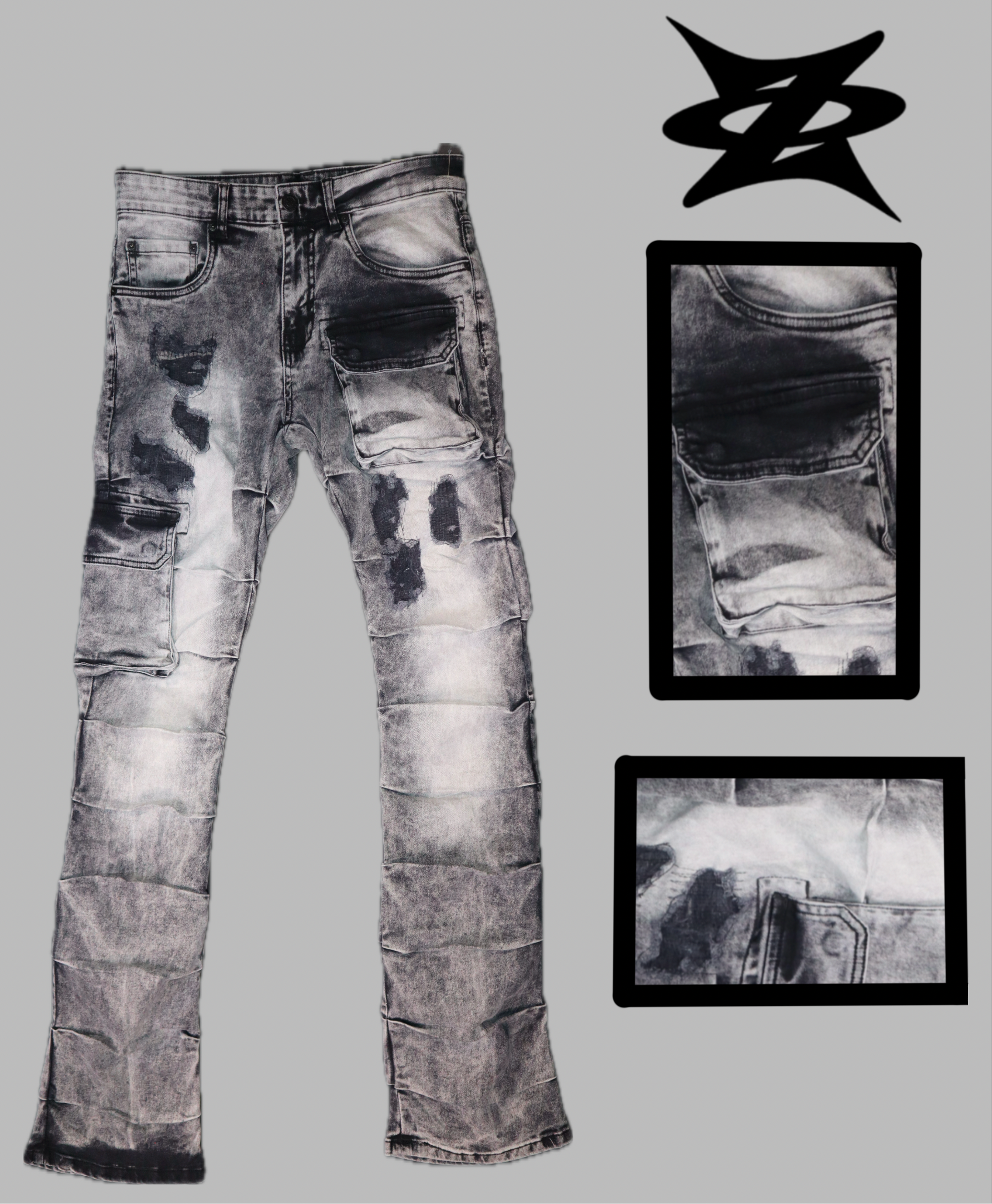 Dale un toque underground y moderno a tu outfit con este jean cargo de mezclilla stretch en Black Acid Wash. Diseñado para ofrecer estilo y comodidad, su ajuste slim-straight con detalles flare fit en la parte inferior lo hacen perfecto para cualquier ocasión.